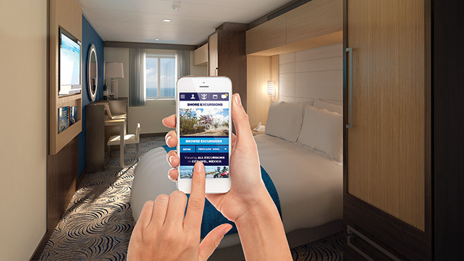 El barco cuenta con conectividad a internet ultra-rápida, un sistema inteligente de identificación de maletas usando etiquetas RFID, y dispositivos vestibles conectados a nuestra tarjeta de crédito para realizar compras en el barco.